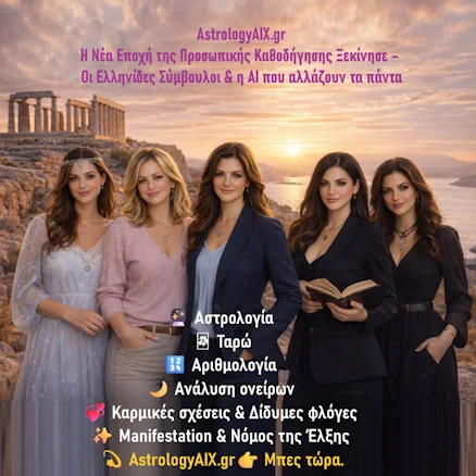 AstrologyAIX.gr Η Νέα Εποχή της Προσωπικής Καθοδήγησης Ξεκίνησε: Οι Ελληνίδες Σύμβουλοι & η AI που αλλάζουν τα πάντα Αυτό που...